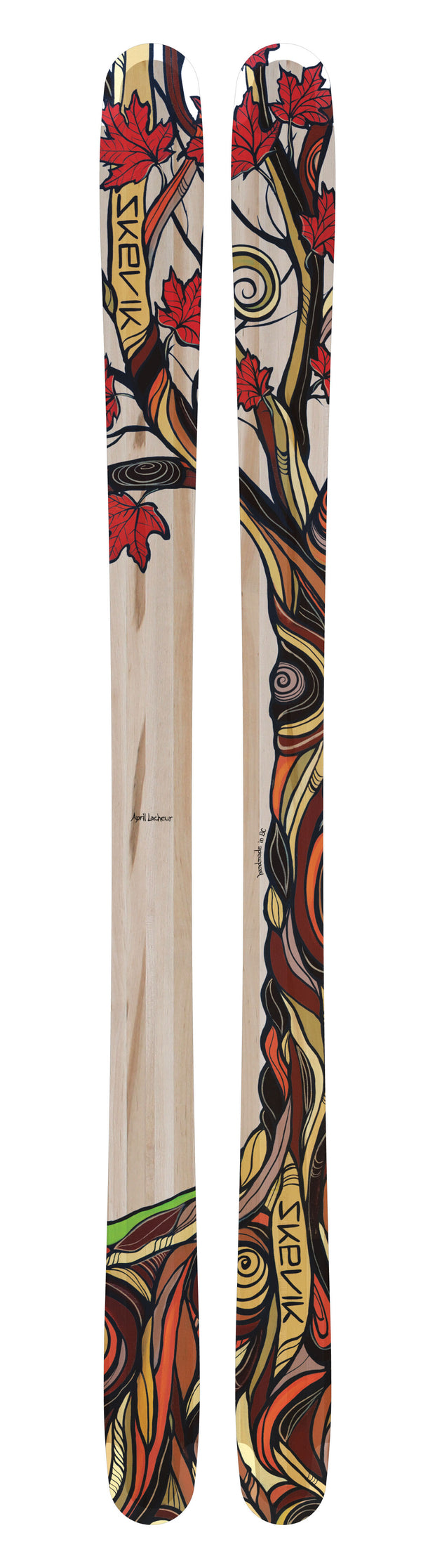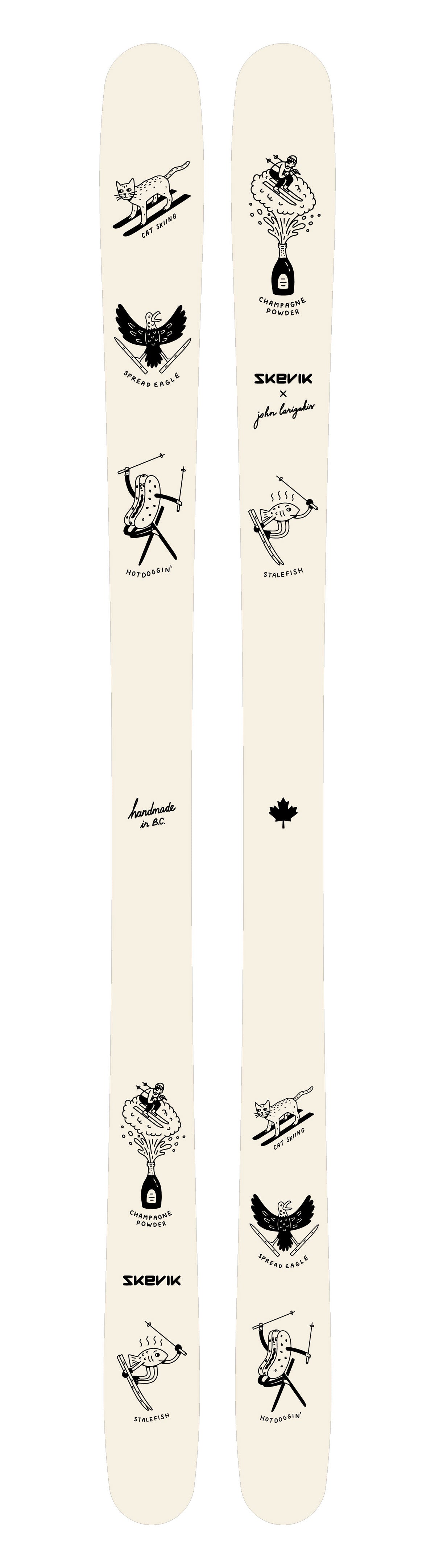 The skis are finished and protected by the most durable, chip-resistant nylon topsheet you can find. Essential when you have a collection of amazing artists’ hard work to show off.
