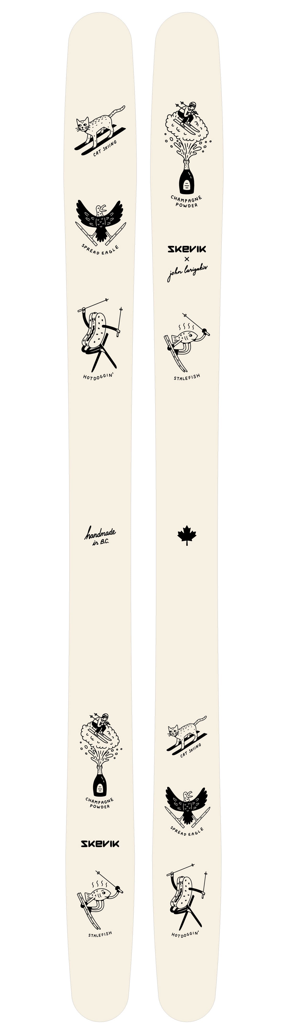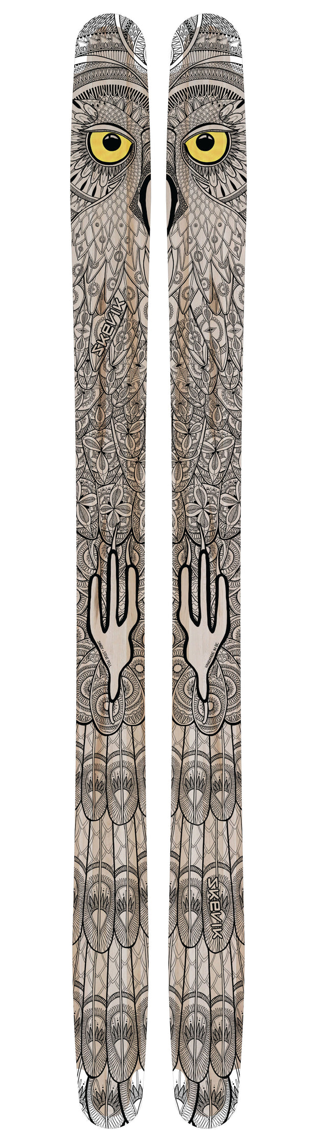 The skis are finished and protected by the most durable, chip-resistant nylon topsheet you can find. Essential when you have a collection of amazing artists’ hard work to show off.